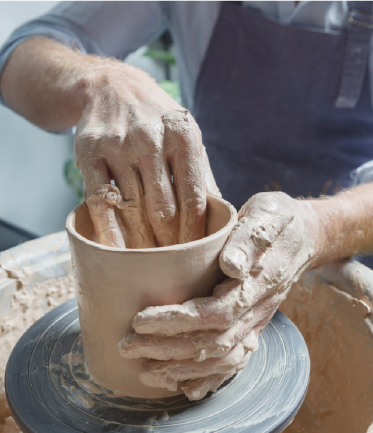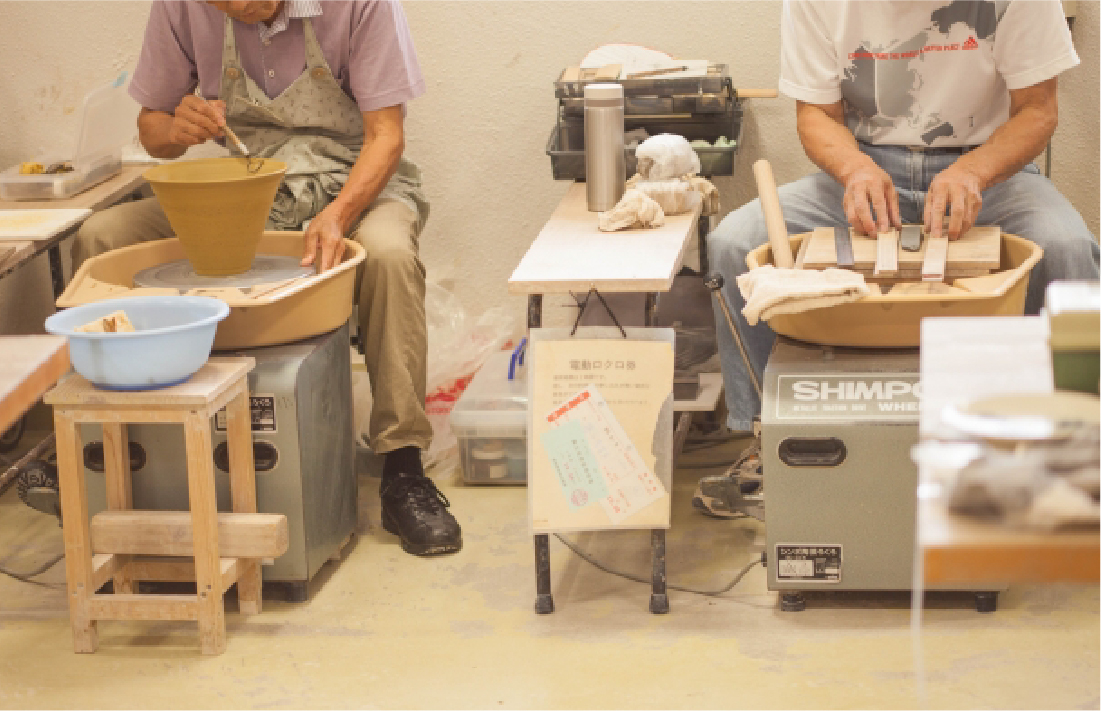 入所者様や利用者様が地域のサポートを得て陶器を制作しています。